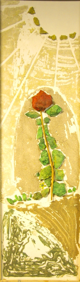 Steine, Sand und Pflanzenteile auf Hartfaserplatte, ca 100x 30 cm